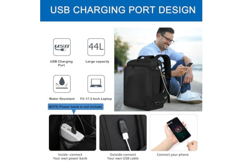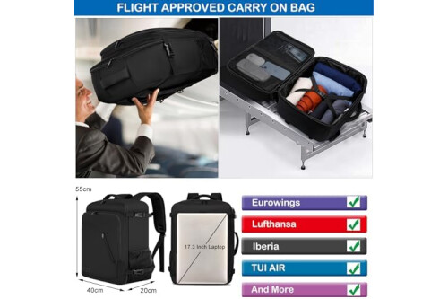 Carry-on Backpack 50x40x20 44L Travel Backpack Carry On with Laptop Compartment 17 Inch Travel Backpack for Airplane,Black