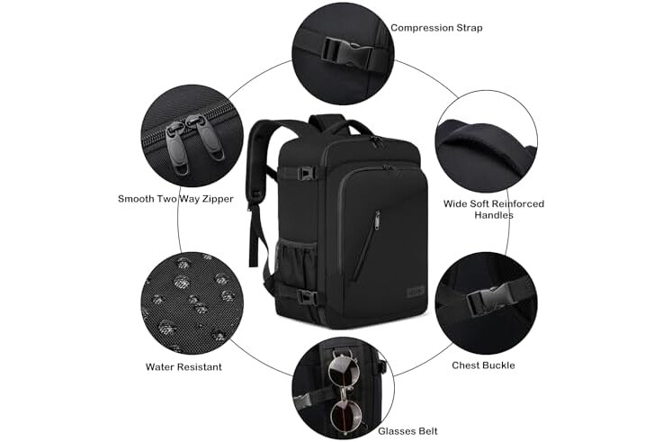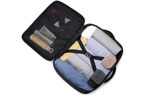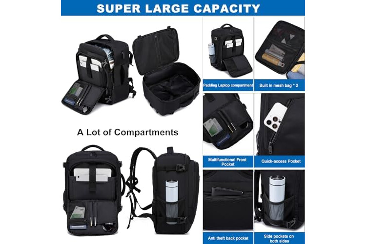 Lots of space and many compartments: These carry on bags look small, but are surprisingly roomy so you can effectively store all the important travel accessories. A large main compartment with zipper and compression strap allow it to be opened like a travel bag and offers space for clothes and personal items. It features front zipper pocket with various packing compartments for quick access. A mesh pocket on the side for your water bottle.