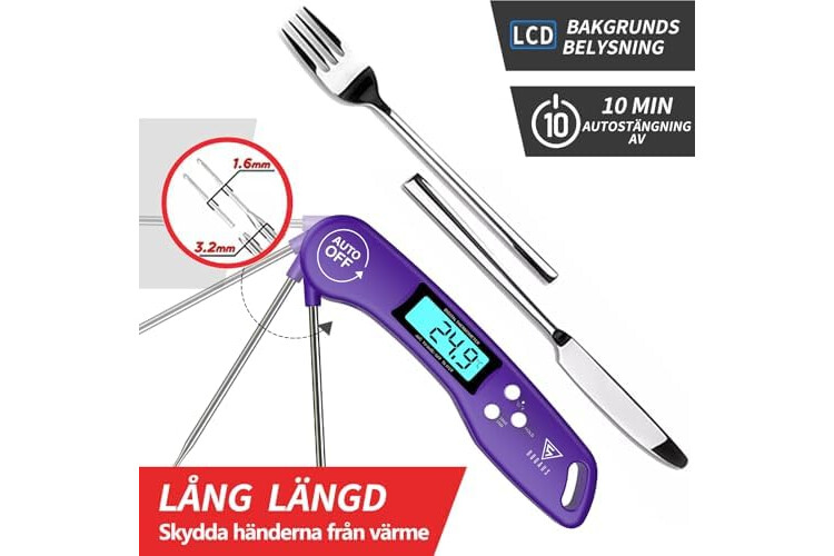 [Sensitive, Sharp & Long Food Probe]: Made of high quality stainless steel 304, length 8mm 1.6mm diameter ultra-thin and sensitive food probe gives readings to 0°C. The length of 4.5 inches allows for a deep range in the midd...