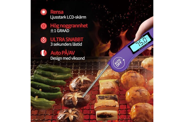 [REVERSIBLE DISPLAY]: The large, easy to read backlight display gives you spectacular clarity when reading temperature in dark or in the midnight smoke! And the reversible screen automatically rotates depending on how the digital thermometer is held and allows you to read the numbers from any direction, which is very easy for right or left people to use