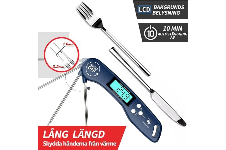 [Sensitive, Sharp & Long Food Probe]: Made of high quality stainless steel 304, length 8mm 1.6mm diameter ultra-thin and sensitive food probe gives readings to 0°C. The length of 4.5 inches allows for a deep range in the midd...