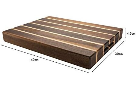 PREMIUM QUALITY- Crafted from high quality wood this extra thick 40x30cm cutting board with a 4.5cm thickness can withstand everyday cutting and chopping without significant wear making it an investment for your kitchen.