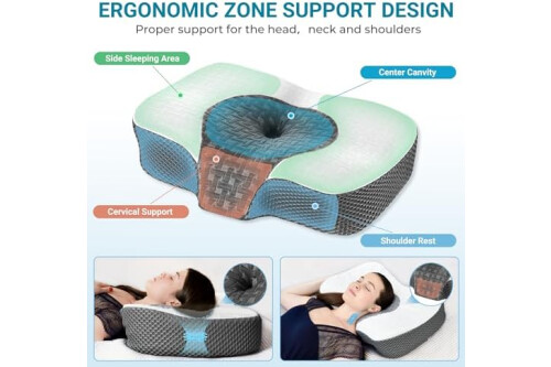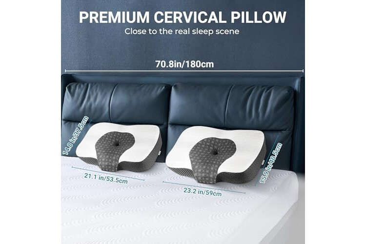 2 IN 1 MULTI-FUNCTIONAL DESIGN: Combines a cervical pillow and a bed pillow in one, which means that you have 2 types of pillows for one purchase. 2 areas for different demands: If you have spine and neck discomfort, we recommend you to use our cervical profile pillow. The neck support area provides custom fit and aligns your head and neck in a way that leaves your airways open. (At the beginning, you may not be used to it, so it is recommended that you give yourself 1-2 weeks to adapt to it)