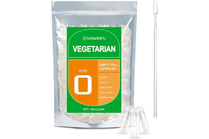 WANANFU Size 0 Empty Capsules Vegetarian (100 Count) Bundle with Micro Lab Spoon with Powder Tamper, Compatible with Capsule Filling Machine