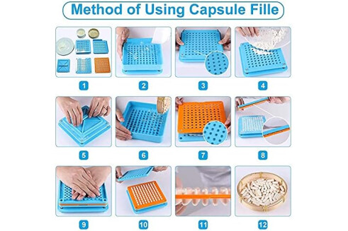 100 Holes Capsule: 10 x 10 holes, total 100 holes, base holder and top size 0, faster and easier than other products; Comes with a tool to make this manual capsule filler easy to follow the step by step instructions in just a few minutes at home