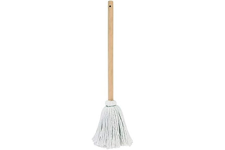 This mop has a cotton head and sturdy wooden handle for strength and durability