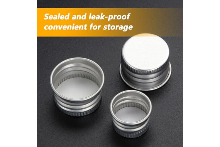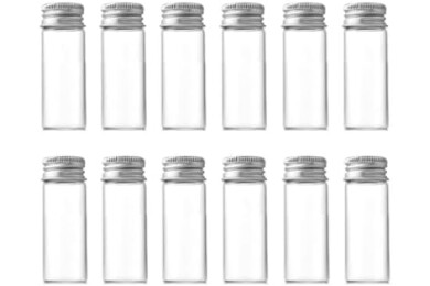 Package including: 12PCS;Material:Glass body part with aluminum cap;Capacity:5 sizes for your choosing(5ml/10ml/15ml/20ml/30ml)