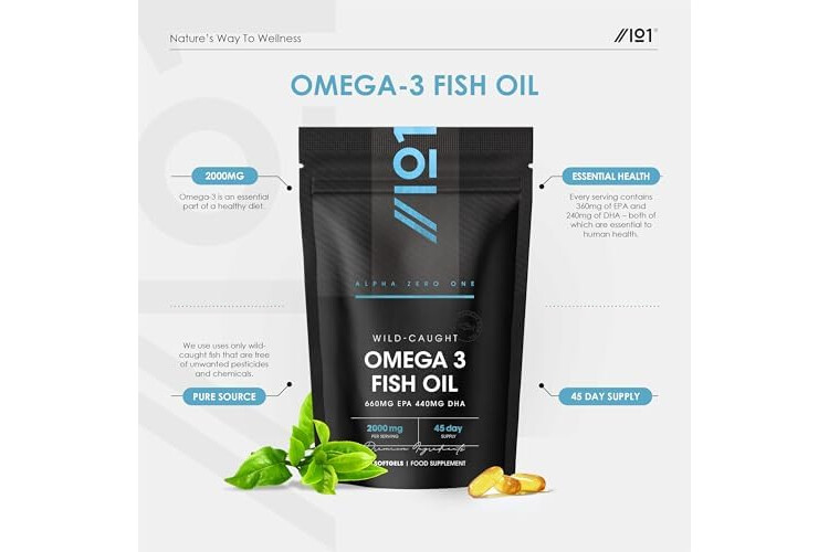 Omega 3 Wild-Caught Fish Oil 2000mg - 660mg EPA 440mg DHA - 90 Softgels - No Additives — Resealable and Recyclable Pouch by Alpha01
