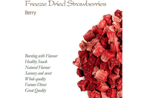 Enjoying fresh strawberries all year round puts a huge strain on the environment and increases your carbon footprint. These guilt-free freeze dried strawberries are harvested in summertime and specially dried to preserve their flavour and nutrition.