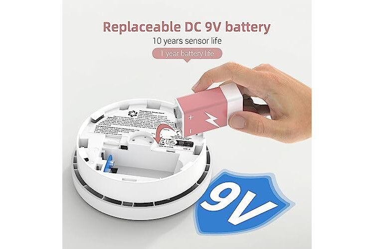 Replaceable battery: The battery of the 10-year fire alarm is replaceable, by replacing the battery, can be used without spending money on new smoke detectors. Battery life is about 1 year.