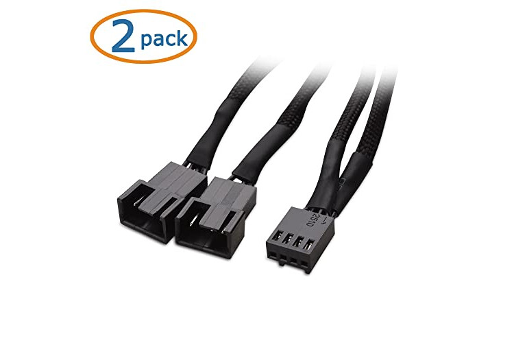 DOUBLE FAN COVERAGE to add 4 fans with the cost-effective 2-PACK of PWM fan cables; Sleeved and wrapped black 4-inch case fan splitter cable provides a tidy look in an open computer case