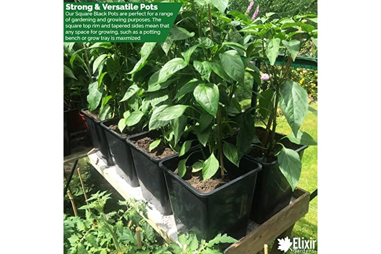 We stock many sizes of black square pots, from 0.25 L up to 11L. Please note: Our 0.25L (7cm) and 0.75L (9cm) varieties are constrcuted from a slightly thinner thermoformed plastic and are predominantly designed for seedlings.