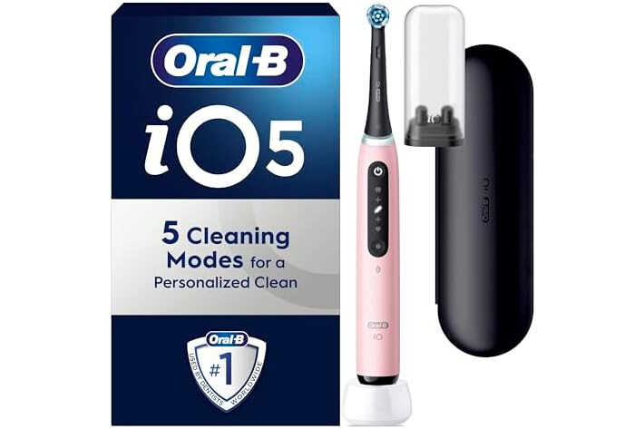 Oral-B iO5 Electric Toothbrushes For Adults, 1 Toothbrush Head and Travel Case, 5 Modes With Teeth Whitening, 2 Pin Plug, Pink
