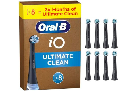 Oral-B iO Ultimate Clean Original Electric Toothbrush Heads, Black, Pack of 8, Replacement Heads with Angled Bristles for Deep Plaque Removal, Long-Lasting Multi-Pack for Home and Travel
