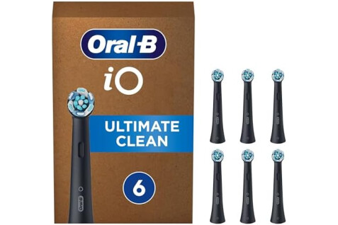 Oral-B iO Ultimate Clean Original Electric Toothbrush Head, Twisted & Angled Bristles for Deeper Plaque Removal, Pack of 6 Toothbrush Heads, Suitable for Mailbox, Black