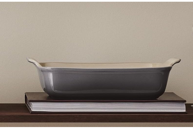 Contents: 1x Le Creuset Heritage Stoneware Rectangular Dish, 1x Care and Use Booklet, Material: Stoneware, Dimensions: 32.7 x 20.3 x 8.9 cm, Weight: 1.47 kg, Colour: Flint, 71102264440001