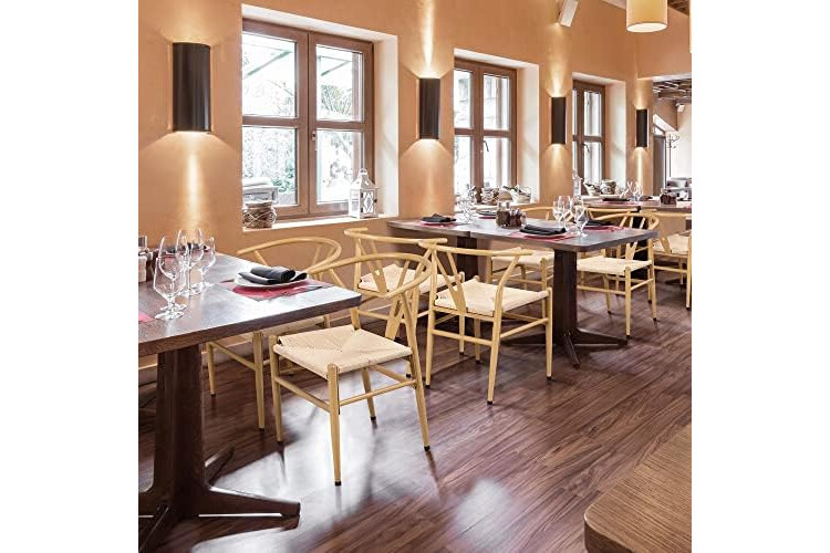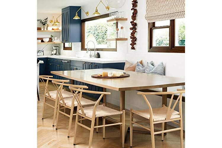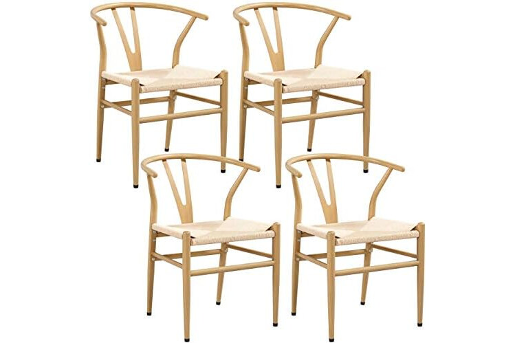 Yaheetech Weave Chair Mid-Century Metal Y-Shaped Accent Chair with Hemp Seat for Kitchen, Dining, Living Room Set of 4 Wood Color