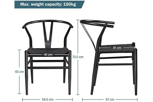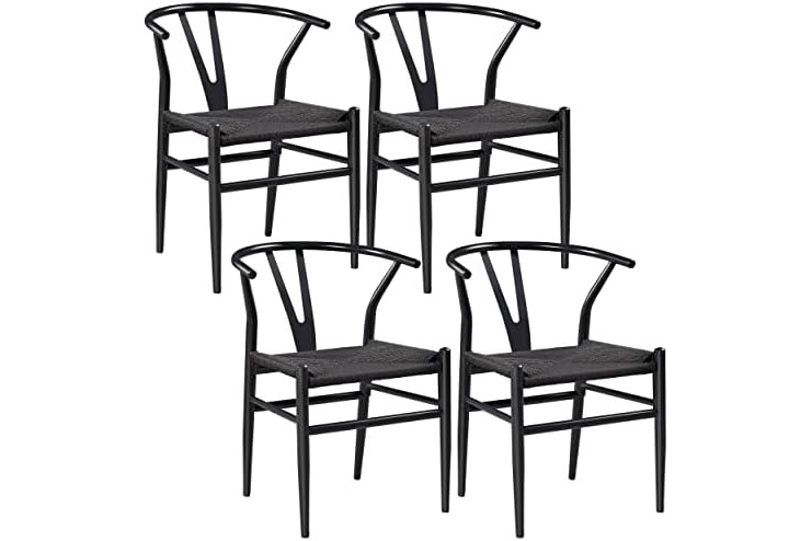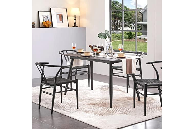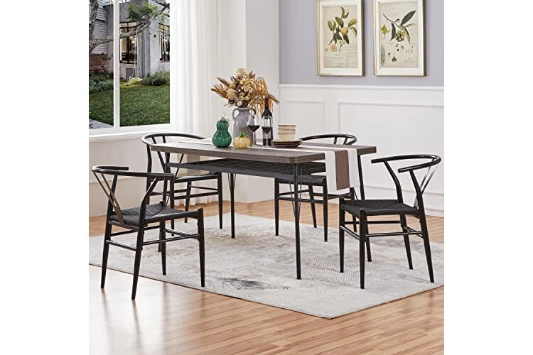 Yaheetech Dining Chair Weave Mid-Century Metal Y-Shaped Accent Chair with Hemp Seat for Kitchen, Dining, Living Room Set of 4 Full Black
