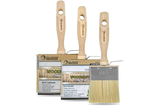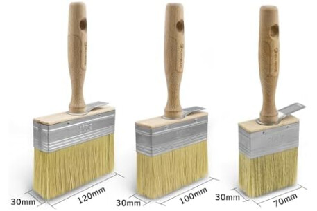 WIDE FERRULE: Three different sized brushes (70mm,100mm,120mm) with larg stainless steel ferrule brush heads (30mm) to hold a large amount of stain or paint