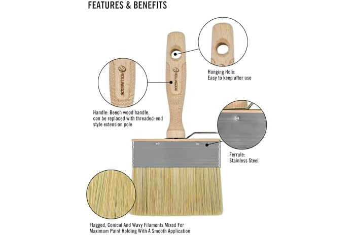 PREMIUM SYNTHETIC BRISTLES: Bristlex filament (flagged tip, fine diameter, wavy) mimics natural bristles for smooth, even application with water or oil-based coatings