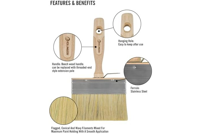 PREMIUM SYNTHETIC BRISTLES: Bristlex filament (flagged tip, fine diameter, wavy) mimics natural bristles for smooth, even application with water or oil-based coatings