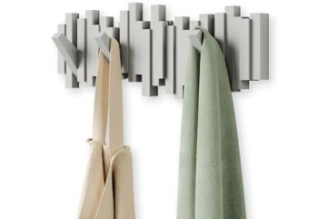 UNIQUE & STRONG: Made of molded polypropylene, the sculptural design of Sticks Multi Hook garment rack looks at first glance like a modern piece of art, until you notice that some of the “sticks” flip down to become hooks for hanging (each supporting up to 5 lbs.)
