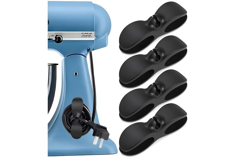 Cord Organizer for Kitchen Appliances with 3M Self Adhesive Mount [4 Pack], Sturdy Stick On Cord Winder for Appliances Cable Cord Holder for Pressure Cooker Blender Mixer Toaster Juicer & More (Black)