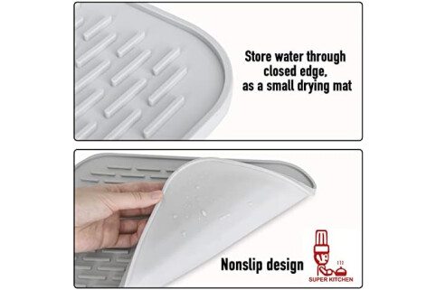 Super Kitchen Non-Slip Silicone Trivets, Small Dish Drying Mat Draining Board Mat, Pot Holder Heat Resistant Pad, Spoon Rest, Coaster,Table Mat Placemat (Grey, 29.5 x 23.5 cm)