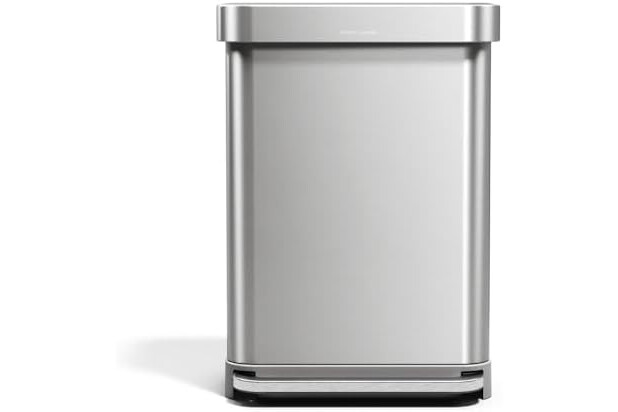 simplehuman CW2023 55L Rectangular Kitchen Pedal Bin with Liner Pocket, Silent Soft Close Lid, Strong Wide Pedal, Fingerprint-Proof, Brushed Stainless Steel, W 47.0cm x H 65.5cm x D 36.0cm