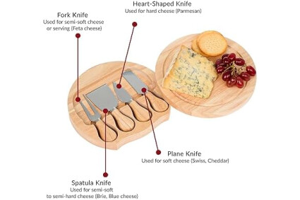 STYLISH CHEESE BOARD SET: This Rubberwood cheese board set makes a stylish presentation that your guests won’t soon forget. Use the magnetically attached tools to serve your selections and enjoy an exquisite experience night after night. This set is a must-have for anyone looking to elevate their dining, picnicking, or party-hosting endeavors.