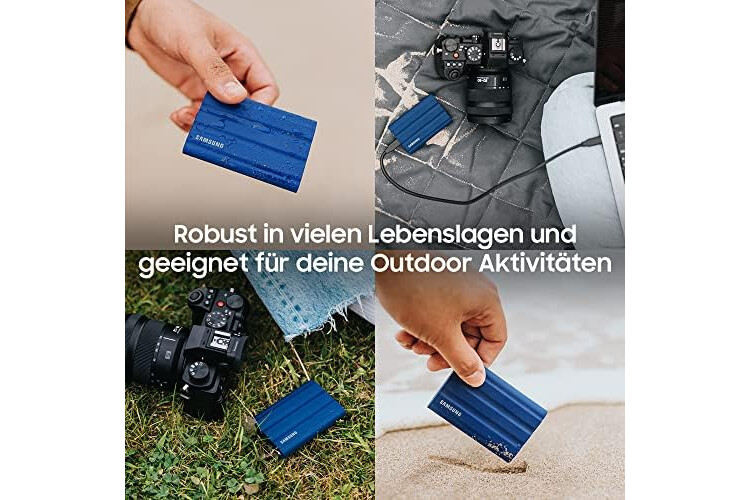 Thanks to the shock-resistant rubber housing, the T7 Shield can withstand falls from a height of up to three meters, making it a safe companion for on the go