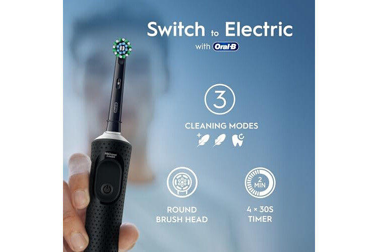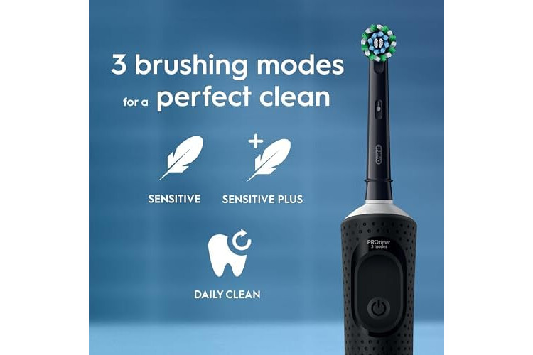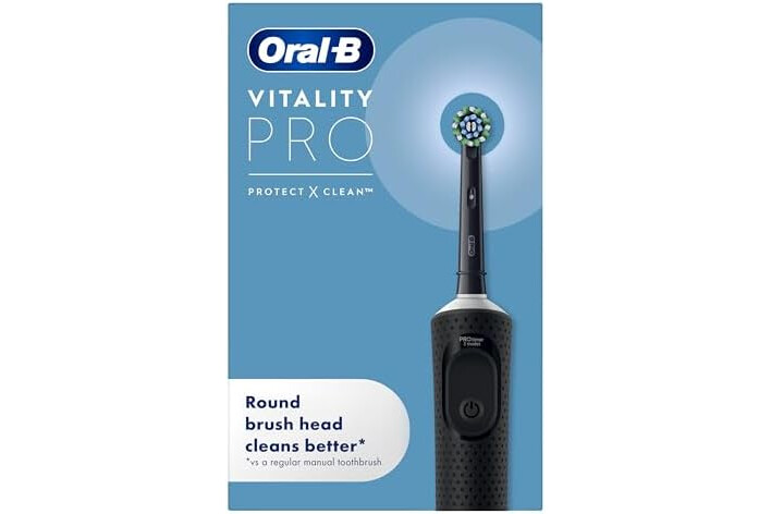 Oral-B Vitality Pro Electric Toothbrushes for Adults, for Him/Her, 1 Handle, 2 Toothbrush Heads, 3 Brushing Modes Including Sensitive Plus, 2 Pin UK Plug, Black (Packing May Vary)