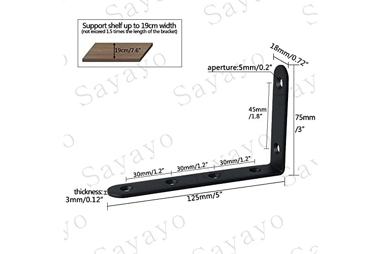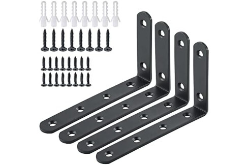 Sayayo Shelf Brackets 4Pcs, Heavy Duty Wall Brackets for Shelves L Bracket Wall Mounted Shelf Support, Stainless Steel Matte Black Finished, EJ5207B-4P (125mm*75mm, 3MM Thick)