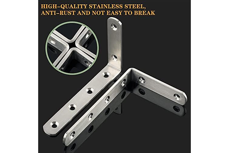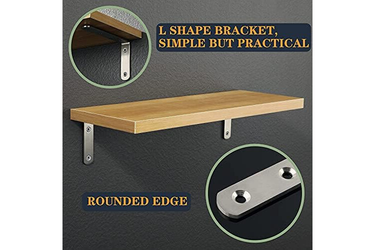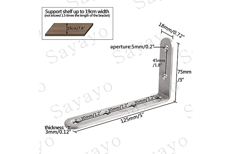 Sayayo Shelf Bracket L Brackets Wall Brackets for Wood Shelves Heavy Duty Shelf Support 125mm*75mm, Stainless Steel Brushed Finished, 4 Pcs, EJ5207-4P