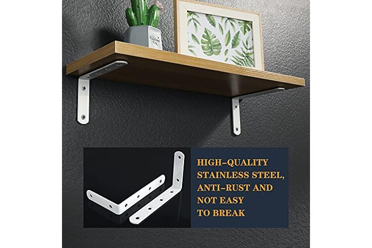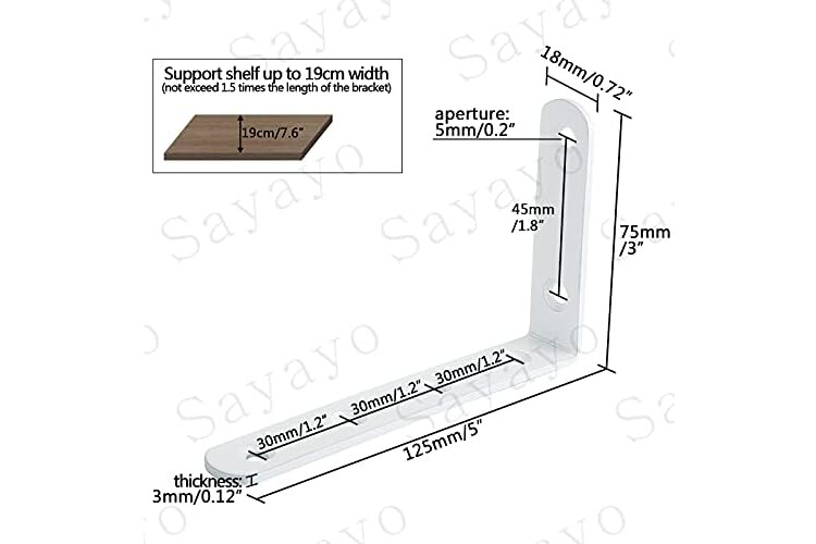 Sayayo Shelf Bracket Corner Brace Angle Bracket Shelf Support Wall Hanging 125mm*75mm, Stainless Steel White Finished, 4 Pcs, EJ5207W-4P