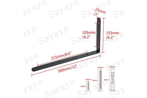 Sayayo 4MM Shelf Bracket L Brackets Wall Brackets for Wood Shelves Heavy Duty Shelf Support 300mm*155mm, Stainless Steel Matte Black, 2Pcs, EJ5230B-2P