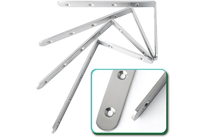 Sayayo Shelf Bracket Corner Brace Angle Bracket Shelf Support Wall Hanging 150mm*100mm, Stainless Steel Brushed Finished, 4 Pcs, EJ6207-4P