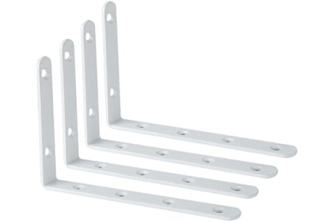 Sayayo Shelf Bracket Corner Brace Angle Bracket Shelf Support Wall Hanging 150mm*100mm, Stainless Steel White Finished, 4 Pcs, EJ6207W-4P