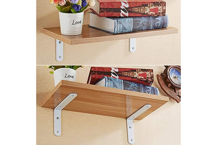 Sayayo Shelf Bracket Angle Bracket Shelf Support Corner Brace Wall Hanging 250mm*150mm, 4mm-Thick Stainless Steel White Finished, 4Pcs, EJ5218W-4P