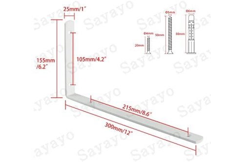 Sayayo 4MM Shelf Bracket L Brackets Wall Brackets for Wood Shelves Heavy Duty Shelf Support 300mm*155mm, Stainless Steel White Finished, 2 Pcs, EJ5230W-2P