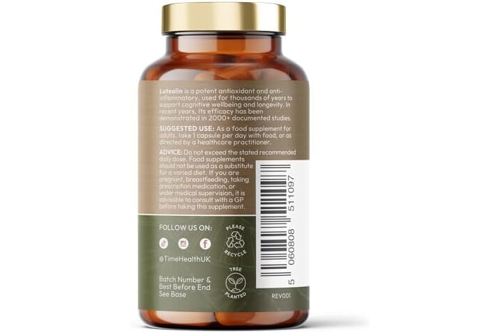 Luteolin - Standardised to 93% Purity - Supports Cognitive Health & Longevity - GMP Standards - UK Made - Vegan - 60 x 100mg Capsules