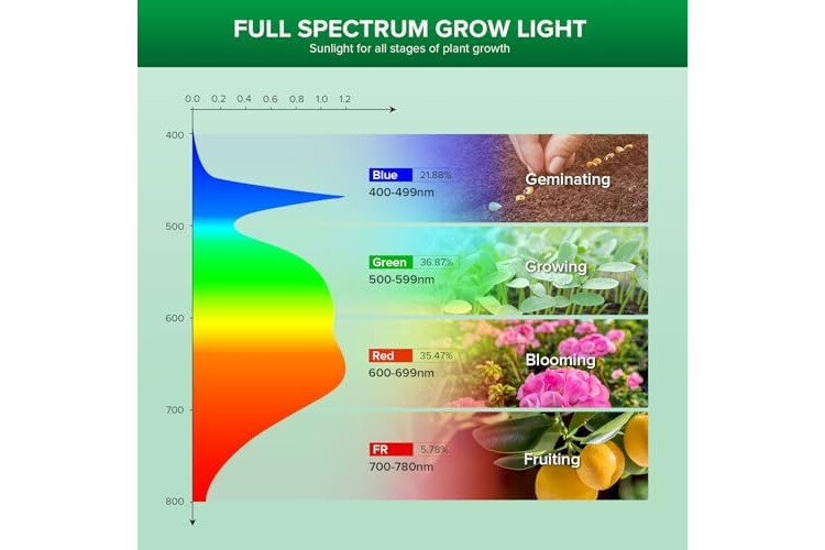 4000K SUNLIKE FULL SPECTRUM: Imitates the solar spectrum, covering the entire visible spectrum of 400nm-780nm; CRI closes to 100, infinitely close to 4000K natural sunlight, suitable for every cycle of plant growth, effectively promotes plant growth, and improves crop yield and quality.