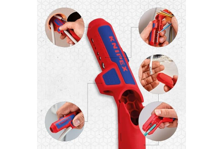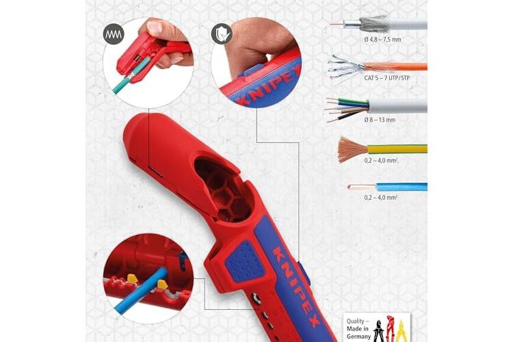 KNIPEX Ergostrip Universal Stripping Tool for Right-Handers, 135 mm, Round Cable, Coax Cables, Data Cables, Wire Stripper, 16 95 01 SB