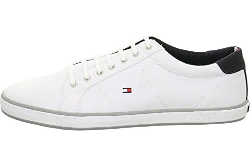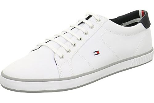 Tommy Hilfiger - Canvas Lace Up Trainers - 100% Cotton - White - Rubber Outsole - Lace-Up - Cotton Insock - Bi-Colour Design - Size 46