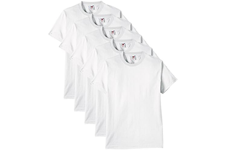Fruit of the Loom Pack of 5 Heavy Cotton Men's T-Shirt + Free Web-Textilien24 Fabric Bag - S M L XL XXL 3XL - Various Colour Sets