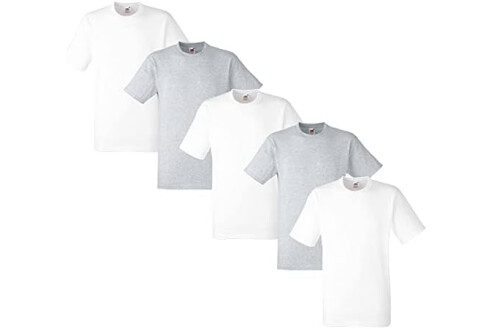 Fruit of the Loom Men's T-Shirt Pack of 5 Heavy Cotton M L XL XXL 3XL Various Colour Sets, 3White/2Grey, XL