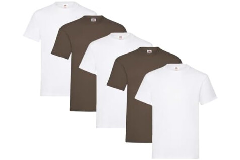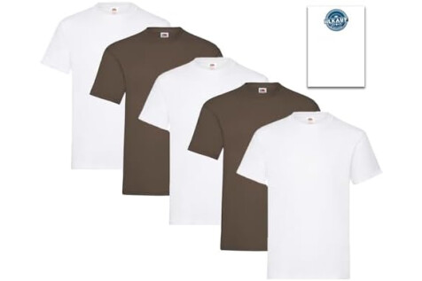 Fruit of the Loom Men's T-Shirt Pack of 5 Heavy Cotton M L XL XXL 3XL Various Colour Sets, 3 x white + 2 x chocolate + 1 Hl Kauf notepad, XL
