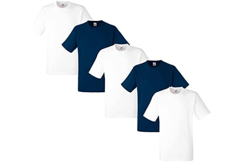 Fruit of the Loom Men's T-Shirt, Heavy Cotton, M, L, XL, XXL, 3XL, Various Colour Sets, Pack of 5, 3white/2navy, XXL