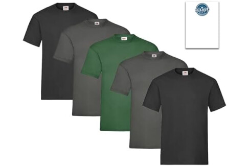 Fruit of the Loom Men's T-Shirt, Heavy Cotton, M, L, XL, XXL, 3XL, Various Colour Sets, Pack of 5, XXL