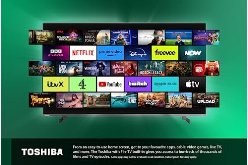 Toshiba 65QF5D53DB QLED 4K Smart Fire TV, TRU Picture Engine, Ultra HD, HDR10, Freeview, Disney+, Prime, Netflix, Dolby Vision, Dolby Atmos, Sound by Onkyo, Alexa, HDMI 2.1, Bluetooth, Airplay- Black